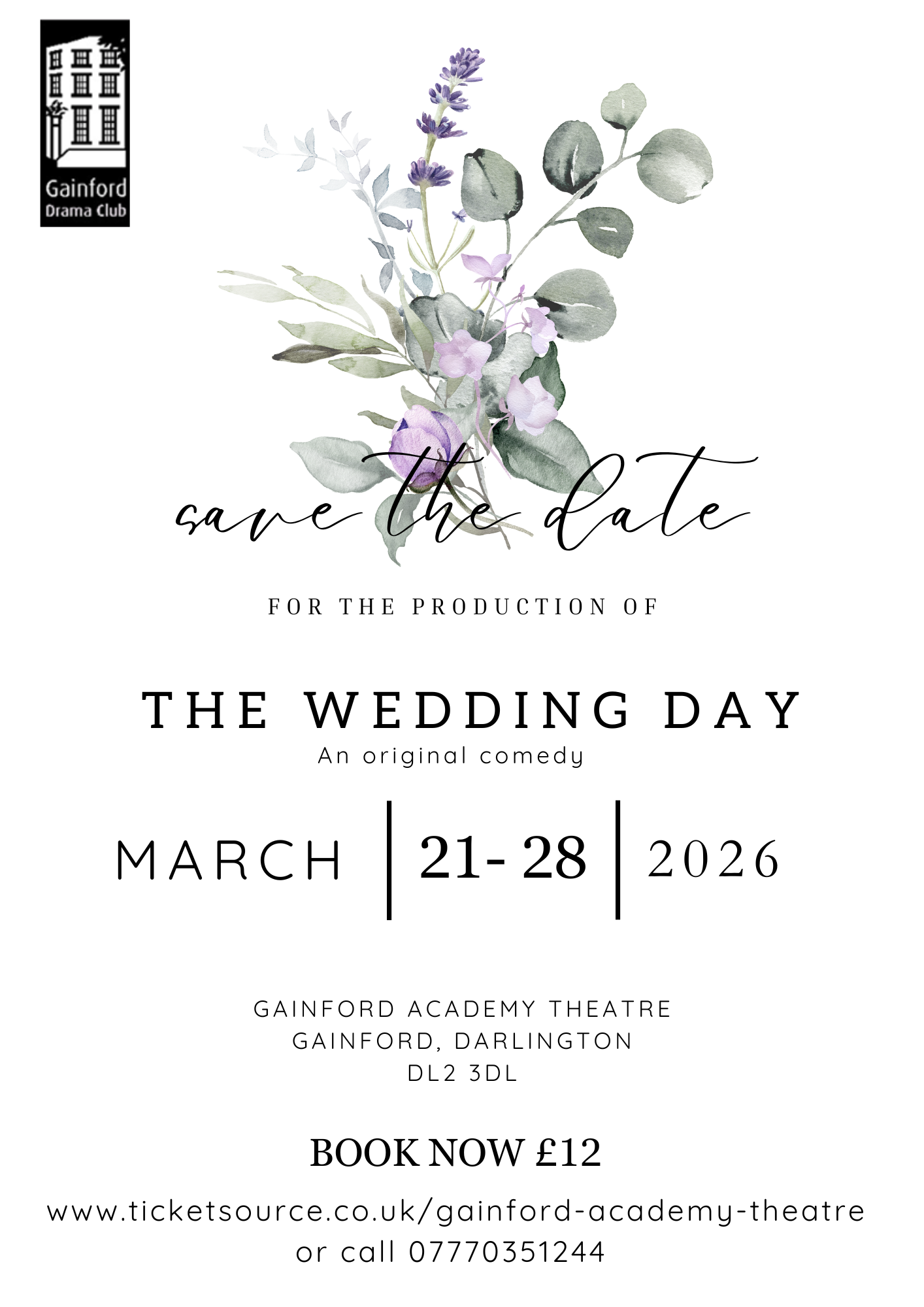 Book your tickets now for a fabulous original comedy. Will they make it up the aisle? Will family secrets be unravelled? Find out this March!